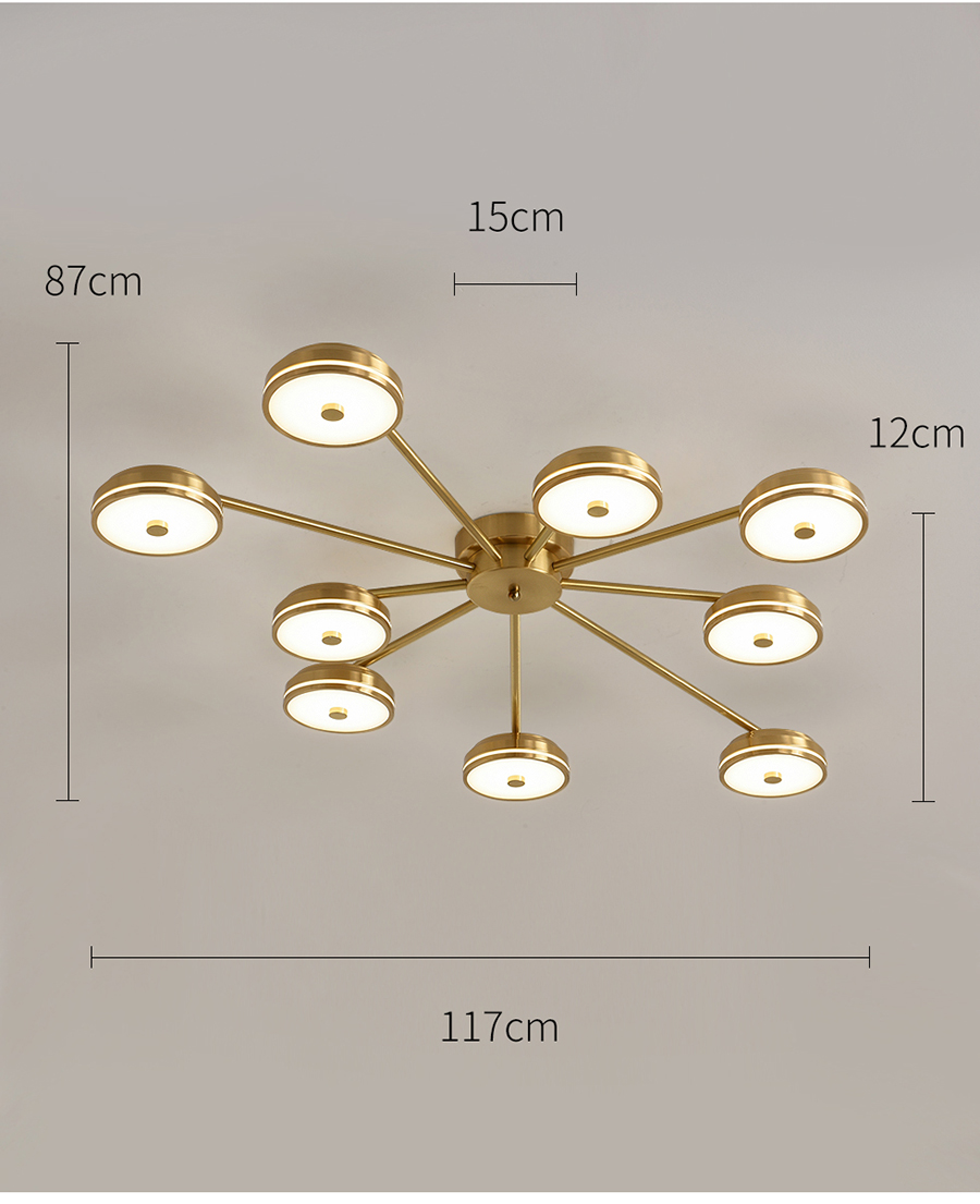 威想新款全銅LED客間吸上灯軽奢简约レストラン寝室灯北欧大気家庭用別荘灯3頭直径47 CM三色変化光