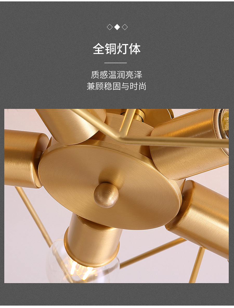 威想新款全銅円形主臥灯軽奢芸術レストラン書斎ランプ後、現代レストランの大吸頂灯A種4頭-直径46 CM-三色光源を送る。