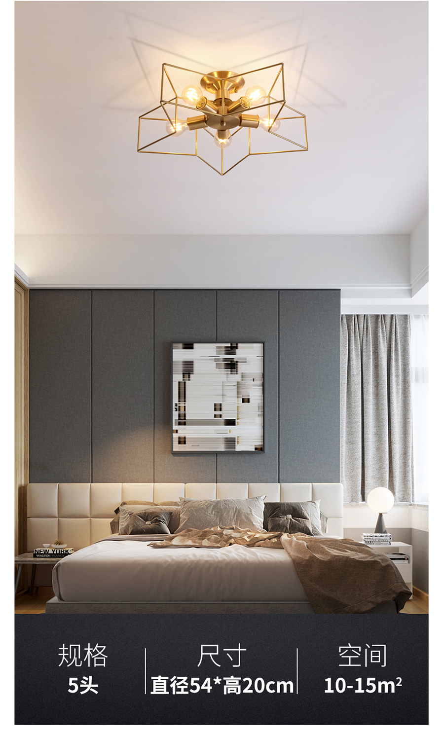 威想北欧寝室灯暖かくてロマンチックな五角星子供房灯シンプルなアイデアで全銅ベランダ廊下のトップライトを吸いたいです。直径30 cm-E 27三色光源を送ります。
