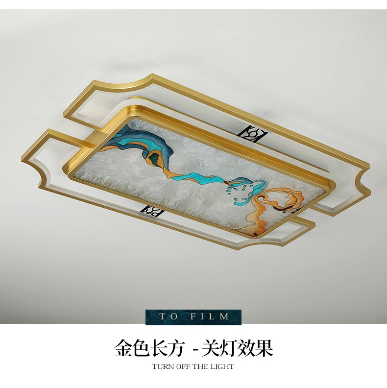 新中国式の吸トップライト、全銅吸トップライト、現代簡単なリビングライト、レトロな中国風レストランエナメルカラー本部屋LEDライト、大気超薄型の寝室ライト、家庭用全銅ライト、金-円、500 mm