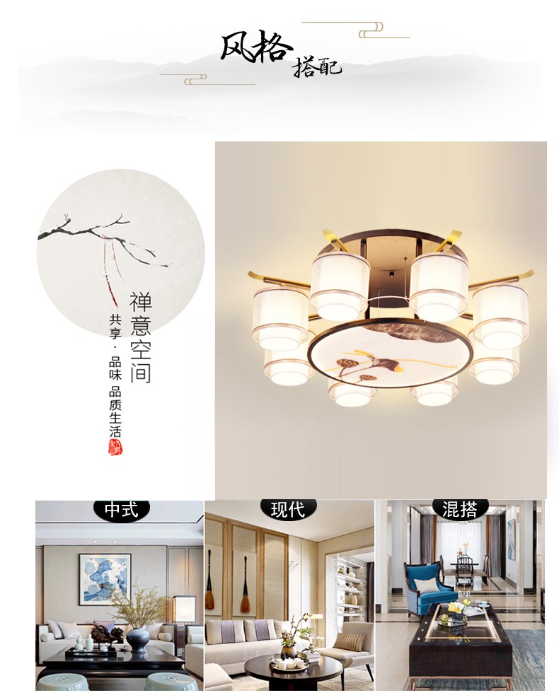 新しい中国式の吸トップライトのエナメル色吸トップライトは円形でレトロな中国風大気現代簡単レストラン家庭用LEDホテル別荘復式楼工事ホール寝室リビングライト3頭-三色変化光【写真価格ブランド見積】-京東