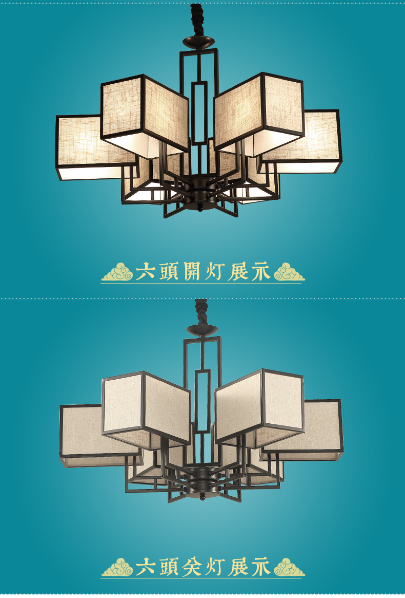 新しい中国式のつり下げ灯のリビングランプ復古中国風の寝室の雰囲気の家庭用レストランのイルミネーションは現代簡単で、創意的な個性的なホールランプと全屋セットの照明器具の3つの部屋の2つのホールのセットのイルミネーション5192-6頭-3色が光ります。