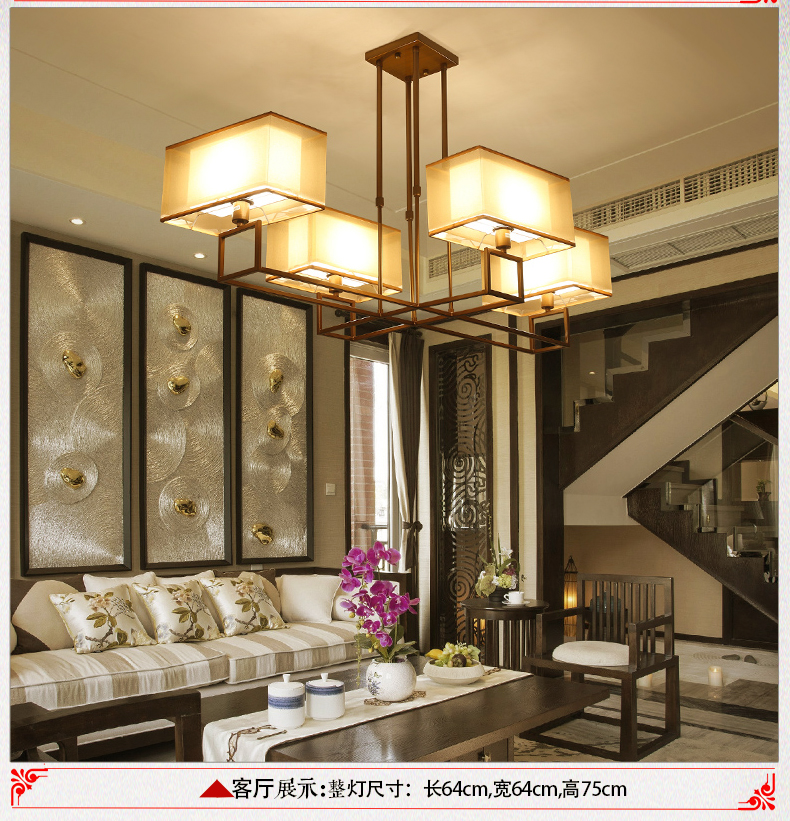近代的な暖かさの新しい中国式のシャンデリアLED大気リビングのシャンデリアは古布芸のシャンデリア寝室のレストランの別荘の復古的な茶屋のシャンデリアホテルのロビーの灯りをまねて、中国式レストランのシャンデリアは黒640*640 mm-三色の光に変わります。