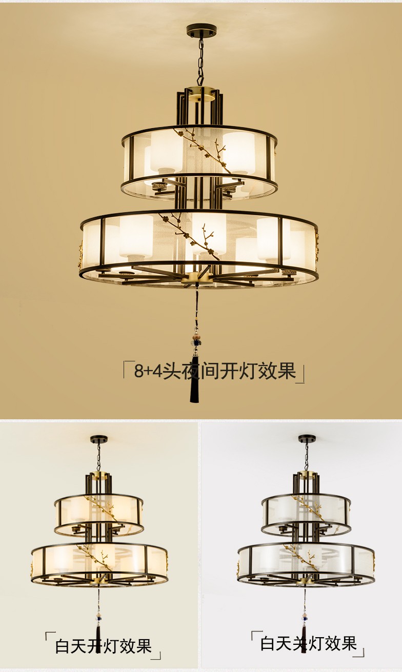 新中国式のシャンデリア客間のシャンデリアは簡単に現代の大気家の食事用シャンデリアの円形の吊り灯りレストランの吊り灯篭寝室灯LED暖かい梅の花の創意部屋の復古書斎の吊明灯の円形-4頭-三色変化光