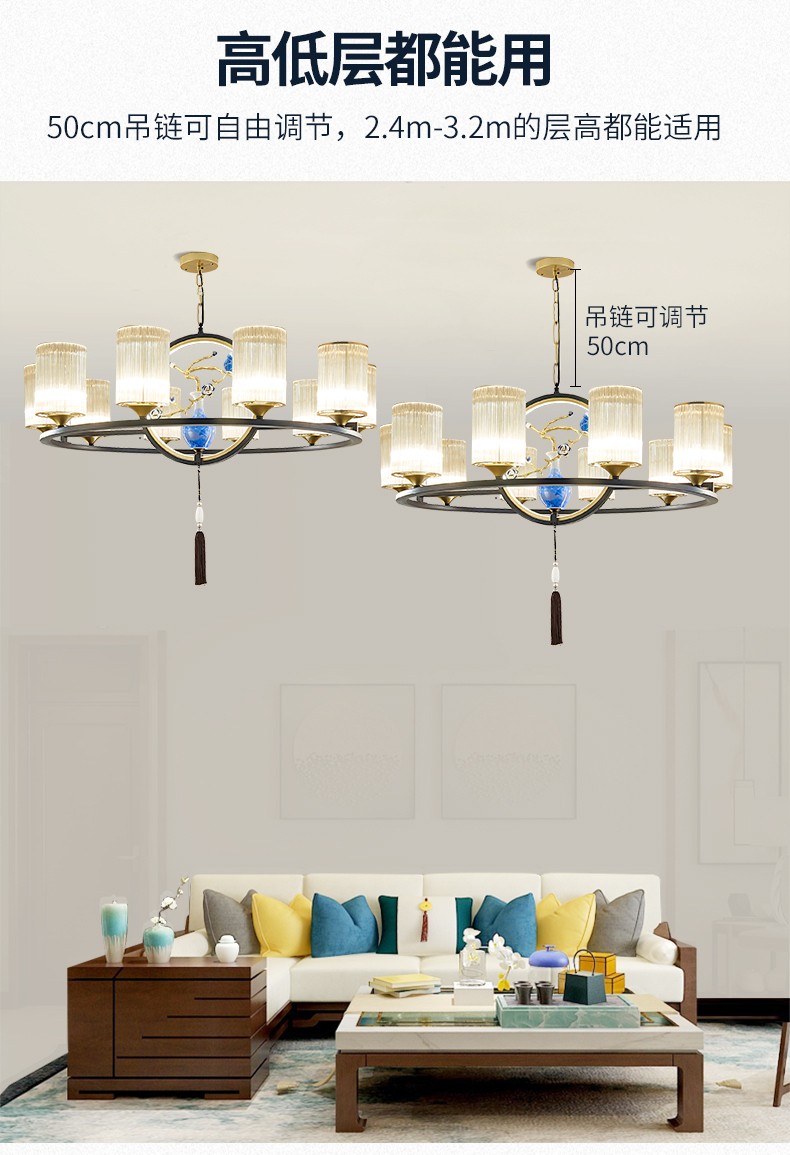 新中国式シャンデリアの創意的な個性があり、豪華なシャンデリア客間のシャンデリアが暖かい現代中国風の禅意クリスタルガラスの光LED本部屋の家庭用大気寝室のレストランの照明器具1頭-3色が光ります。