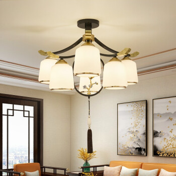 近代的で簡単な新しい中国式のつり下げランプの復古的な中国風の暖かいリビングランプLED寝室のつり下げランプ家庭用複式楼の別荘のホテルのガラスの本の部屋の創意的な個性の中国式の明かりの3頭-3色は光に変わります。
