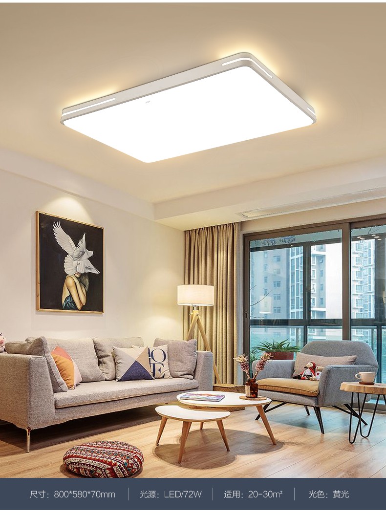 顾家led客厅灯简约現代シーリングライト北欧创意餐厅卧室ランプ套餐儿童房间全屋灯飾组合 小号客厅灯80*56CM/90W三色变光