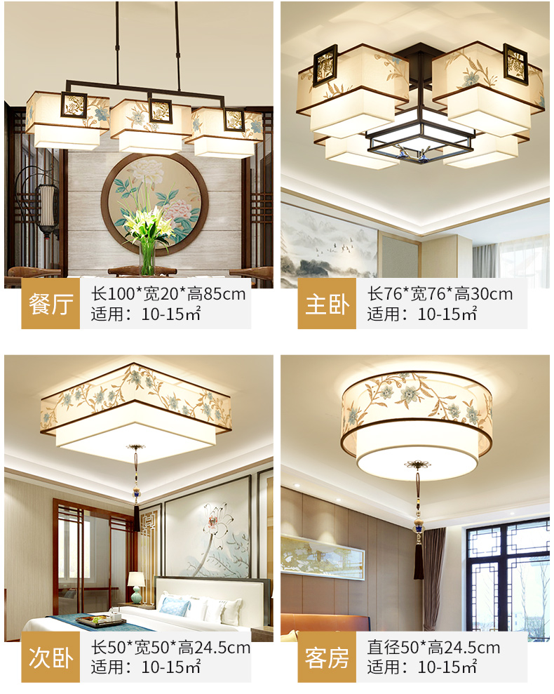 | 商品名称 | 正前新中国式シングライト現代簡単布芸寝室レストラン書斎灯大気LED中国風コースラインプA 01コース-三室両庁(送陽台灯)12321 |