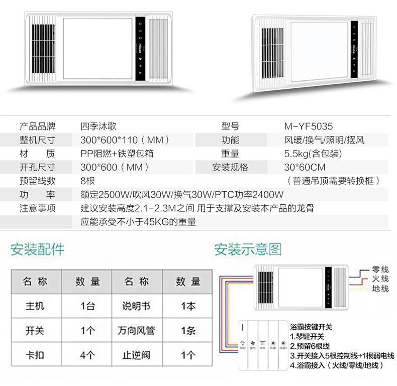 【四季沐歌(MICOE)浴霸】四季沐歌(MICOE)多功能五合一集成吊顶风暖浴霸卫生间浴霸灯大功率取暖器LED照明换气暖风集成吊顶 双电机安全速热多功能浴霸【行情 报价 价格 评测】-