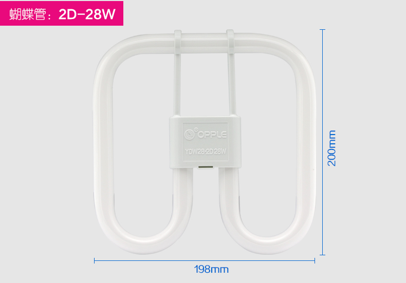 欧普照明同款2 D灯管三基色节能灯管方形四針蝶管ydw 10 w 16 w 21 w 28 w 38 w YDW 10-2 D/10 W-白光6500 K 21-30 W