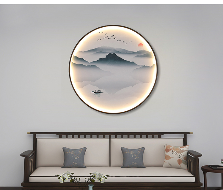 | 商品名称 | 聖ゲーム新中国式壁灯玄関装飾画帯灯円形壁画灯発光壁画廊下通路水墨禅意リビング背景壁掛画灯001款黒色35 CM【暖光】 |